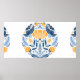 Folk art round ornament with birds,roses,and flowe poster