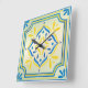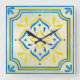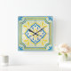 A fun and unusual folk-art look for your living room, kitchen or den. Blue and yellow, square clock. Enjoy your new clock.
