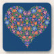 Folk Art Style Floral Heart, Blue Set of Coasters