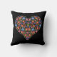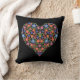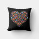 Folk Art Style Floral Heart on Black Pillow