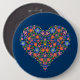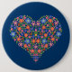 Folk Art Style Floral Heart on Blue Round Button