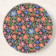 A chic Round Sandstone Coaster, with a Floral Pattern on a Black background, inspired by East European Folk Art. Part of the Posh & Painterly 'Folk Heart' collection.