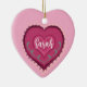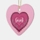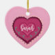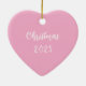 Original illustration of a folk art pink modern heart ornament with custom name and Christmas 2024 on the back side.