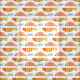 This folk art design features a pattern of orange, yellow and teal swimming fish.