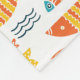 This folk art design features a pattern of orange, yellow and teal swimming fish.