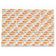 This folk art design features a pattern of orange, yellow and teal swimming fish.