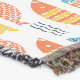 This folk art design features a pattern of orange, yellow and teal swimming fish.