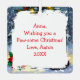 Cute Christmas cat themed ornament with a beautiful tabby cat with red poinsettias and snowy Christmas tree background. On the back you can add your own custom message.