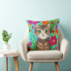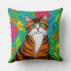 Folk Art Whimsical Style Cat and Flowers Cushion