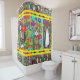 Folk Art Whimsical Style Cat and Flowers Shower Curtain