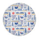 This folk art design features a woodland winter scene with birds, snowflakes and trees.