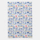 This folk art design features a woodland winter scene with birds, snowflakes and trees.