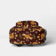 A charming pattern of seated orange foxes surrounded by yellow and purple flowers, green leaves, and dotted accents on a rich burgundy background.