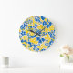 Folklore pattern with Ukrainian flag colors Large Clock