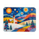 Beautiful vibrant, geometric winter landscape. Fun colorful Holiday magnet to keep your notes, photo's, or shopping lists front and center this holiday. Great as a stocking stuffer too.