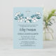 Folksy pale blue and white floral baptism invitation with with charming fonts against a pale blue background. Floral baptism invitation with pretty blue and white flowers in a hand drawn folk style and a white cross. Blue and white baptism invitation with simple floral illustrations in blue and white and dark teal for your son's christening.