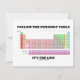 Wry scientific humour comes alive on any of these gifts featuring the Periodic Table of Elements, along with the chemical humour saying "Follow The Periodic Table - It's The Law". No need to be a chemist or chemistry major to enjoy any of these educational, scientific attitude gifts! For all those who work with the Periodic Table of Elements!