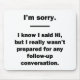 For the sarcasm lover in all of us. Check out this witty “I Know I Said Hi, but I Really Wasn’t Prepared for any Follow Up Conversation” design on apparel and gifts.