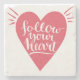Follow your heart - white modern calligraphy phrase handwritten on pink heart background. with grunge texture. Vector card design with rough typography | Bigstock® - All Rights Reserved.
