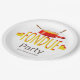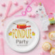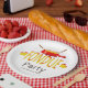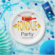Paper plates designed for a fondue party celebrated at any time . You can change the word " Party" and the date /name of the party to suit your occasion .Typography design with narrow hand-drawn fonts , hearts and a graphic fondue pot .