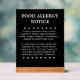 You can adjust the text on this safety sign to warn for customers who may have a food allergy or intolerance to certain foods such as milk, eggs, wheat, soybeans, peanuts, and tree nuts. You may state whether or not you will accommodate special requests regarding dietary restrictions. this sign can be used to display information in bakeries, food takeaways, fast food outlets, cafes, deli counters, seafood counters, restaurants, bars or other food ordering establishments .