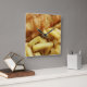 Food theme kitchen wall clocks with photo of fish and chips on the clock face in this food themed wall decor clock design for a kitchen, college dorm room decor, or seafood restaurant.