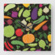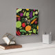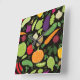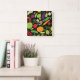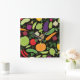 Food on a black background square wall clock