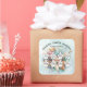 The size is perfect and the design has a softness with the beautiful flowers around the edges. The black lettering on the white background is sharp. It stands out beautifully. I love the Mixture of font styles as it catches the eye.
