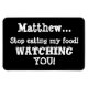 Do you find it annoying when your room-mate or family member keeps eating your food or drink? It happens a lot, people see something good in the communal fridge and, well....they just can't help themselves, and there goes the pie your mum sent you as a special treat! Here's the magnet for you....you can personalise it with the name of the suspect, and give him/her the hint in a not so subtle way (let's face it subtlety is lost on thieves!) Humour takes the sting out of it a little though! The magnet is in black, you can customise the colour, but I'll be adding more colours soon. All the text is customisable, states "Matthew...stop eating my food! Watching you!" The word "watching" is in a cute font with small eyeballs on top of the letters to ram the point home!