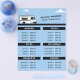 A flyer with an illustration of a food truck with a window, in the background there is a blue sky with some clouds with menu & price list. It will be suitable for street food or catering services. On the back, you can add the places and times when you can be found, as well as a QR code.