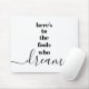 “Here’s to the fools who dream.” Be one of those who always lets their optimism control their vision and aspirations. This stark, modern, graphic, minimalist mousepad combines bold, san-serif typography with handwritten calligraphy script, all in black and white. Great inspirational quote to inspire you all day long. Wonderful for your morning dose of motivation.