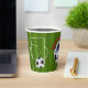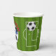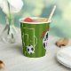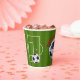 These personalised birthday party paper cups have a football design with a name, age, and event all on a football field with a football. Personalised these cups with a the birthday event, name and age year. Super fun paper cups to use at your kids football themed birthday party. You can change the colours in customise for any fonts.