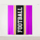 This sporty, athletic design features bold FOOTBALL text inside a highlighted wide black stripe with double white and yellow racing stripes against bright tropical pink background stripes. The text in this design can be personalised.