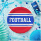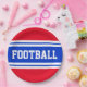 This sporty, athletic design features bold FOOTBALL text inside a highlighted wide vivid blue stripe with double white racing stripes against a bright red background. The text in this design can be personalised.