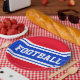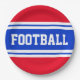 FOOTBALL Bright Red White Blue Racing Stripes Paper Plate