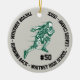 Create a personalized football ornament for your favorite school team player. Features a running football player going all the way to score a touchdown! Add your players team number, championship status, year, school name or other customized text. Gray , white, green and black design is perfect for your holiday Christmas tree.