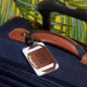 This was purchased as part of a 40th Birthday present for my nephew who is going to Vegas. It is made of high quality, very study and we decided only to put his name on the back of the tag, but you can add a full address if you so wish.