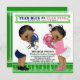 Football gender reveal baby shower invitations with adorable African American ethnic baby boy and baby girl wearing football outfits on a cute football field background. You can easily customise this cute football gender reveal invitation for your event by simply adding your details.