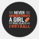Football Girl Never Underestimate A Girl Who Plays Classic Round Sticker