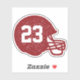 Football fans and players will appreciate this simple helmet silhouette with a distressed texture and custom text area where you can put a number, year, team or personal initial. Make it you - make it yours! The classic maroon red and white colours are perfect for a lot of teams, but other colour combinations are available. This personalised football helmet sticker is great for high school athletes and also middle school, youth and more!