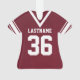 Maroon and white football jersey with white trim. Change number and names and upload a favourite photo.