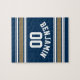 Football Jersey Navy Blue Gold Stripes Name Number Jigsaw Puzzle
