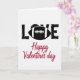This greeting card features a stark white background with the word “LOVE” centered in distressed charcoal-black lettering, giving it a sporty, slightly rugged look. The “O” is replaced by a stylized American football in dark gray-black, detailed with white laces and a white stripe, adding a fun nod to game-day romance ❤️. The strong, worn texture of the black letters feels like it was stamped on, while the football sits neatly in line with the other letters to keep the layout balanced. Beneath the main word, “Happy Valentine’s day” appears in a flowing crimson cursive line, stretching across the lower portion like a soft ribbon of red 🥰. The contrast between the dark top text and the warm red message creates a sweet push-and-pull, like two people with different styles leaning toward each other. Plenty of open white space surrounds the design, making the black-and-red elements stand out without crowding. The football’s white laces and stripe are crisp and centered inside the “O” shape.