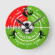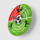 Football Match Football Clock. This novelty football clock is great fun for anyone who loves football! The design is based on a football match with a football field, with the centre circle and in the middle, a football ready for kickoff. The match time starts at kickoff and has the first half of the game up until 45 minutes. Then there is the half-time shown in red. The second half starts again at kickoff and ends at 90 minutes when there is the final whistle. The football slogan reads: The Beautiful Game. Two football players ready to shoot at goal are also shown in silhouette. This fun football clock will look great in any room and makes a fun football gift for football players and football fans alike.