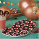 A fun pattern of classic brown footballs on customisable paper party plates. This design has different sized footballs randomly arranged on a custom black background colour. Choose your favourite background colour and you can adjust the size of the pattern to make this partyware perfect for you. Great for any football fan!
