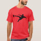I give wanted to give this a 4 instead of a 5 because these Basic DARK T0shirts run unexpectedly SLIM or Narrow. Which is great if you do not have a potbelly, but I have a paunch. It isn't the shirt's fault that I've got a beer belly. The design and shirt itself is a quality cotton shirt. The color is more of a deep purple, but still a very pretty color. The Basic DARK T-shirts run a bit SLIMMER than the Basic Ts. The neck is a fraction narrower (or seems to be narrower) also. I'm a paunchy middle-aged woman and my neck is 12 inches (31cm) thick and the neckline fell about the same as in the photo of the man, and I had the desire to tug it a bit. So if you're a thick necked man or like loose shirts, be aware these are slimmer shirts. Once I get rid of my lockdown paunch it'll look great. The shirt washed well in cold water with no apparent bleeding. We don't have a dryer, so it hung dry. Did not shrink. Love the colors and the design. The design looks smaller on my shirt than it does on the model on-line. But still, it looks good on the shirt. The printing looks as it does on the model, just the size seems fractionally smaller. Washed garment in cold water, hung dry and design appeared unaffected.