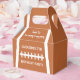 Cool custom football birthday party favour box that looks like a ball with your personalised text in the centre. Add a player's or coach name and sports team or other text for great celebration decor at the end of a season.