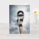 Football player holding helmet in air card