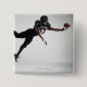 Football player leaping in mid air to catch ball 15 cm square badge