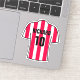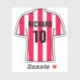 Football sticker. Football shirt design in Red & White Stripes. Personalised with your choice of name and number.